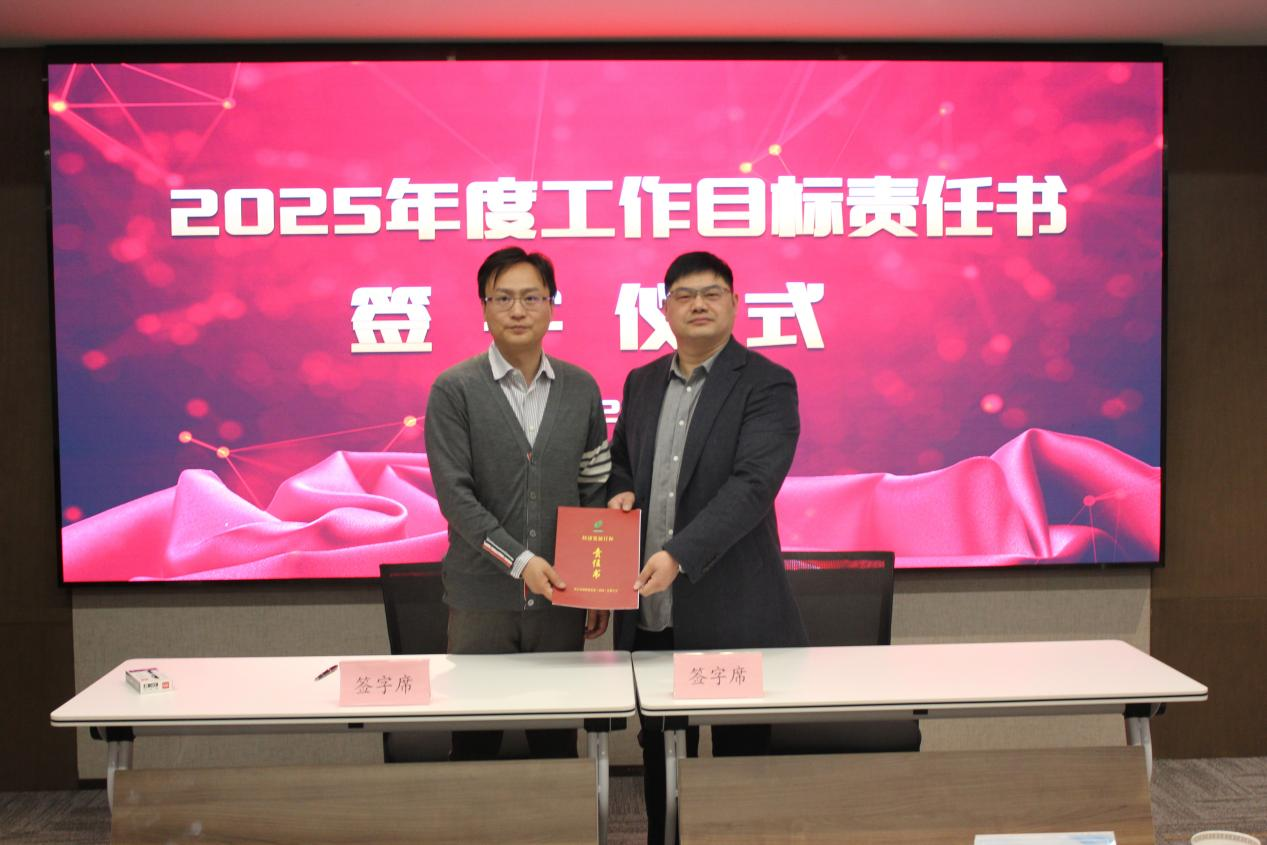 ↑總經(jīng)理陳寅先生同裝備制造事業(yè)部有關部門負責人簽訂工作目標責任書