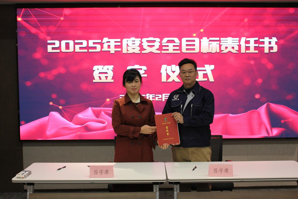 ↑副總經(jīng)理潘麗女士同裝備制造事業(yè)部和商業(yè)管理事業(yè)部有關部門負責人簽訂工作目標責任書、安全目標責任書