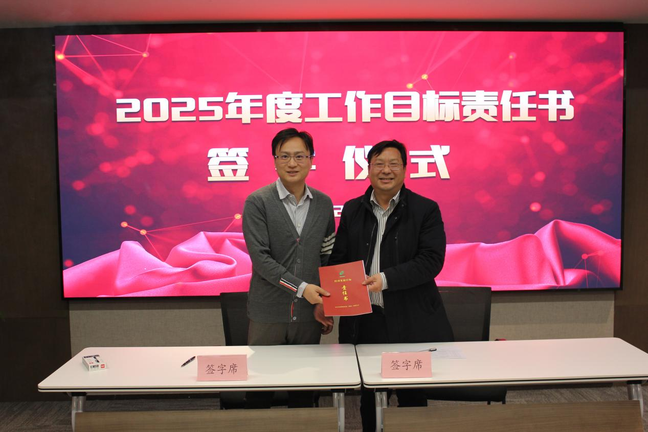 ↑副總經(jīng)理楊華女士同投資運營事業(yè)部有關責任人簽訂工作目標責任書
