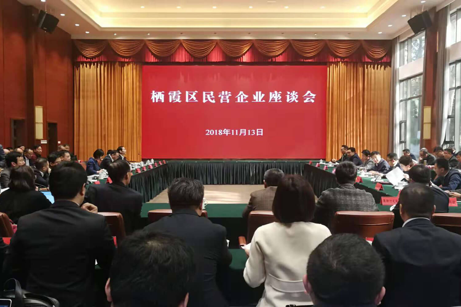 11月13日下午,南京市棲霞區(qū)委區(qū)政府在棲霞區(qū)黨校召開區(qū)內(nèi)民營企業(yè)座談會,區(qū)委書記黎輝、南京經(jīng)濟(jì)開發(fā)區(qū)管委會主任沈吉鴻等領(lǐng)導(dǎo)和區(qū)委區(qū)政府有關(guān)部門負(fù)責(zé)人、以及50家民營企業(yè)和10家銀行代表參加會議。蘇商集團(tuán)副總經(jīng)理潘麗和江蘇物華國際物流有限公司副總經(jīng)理王洋應(yīng)邀參加了會議。