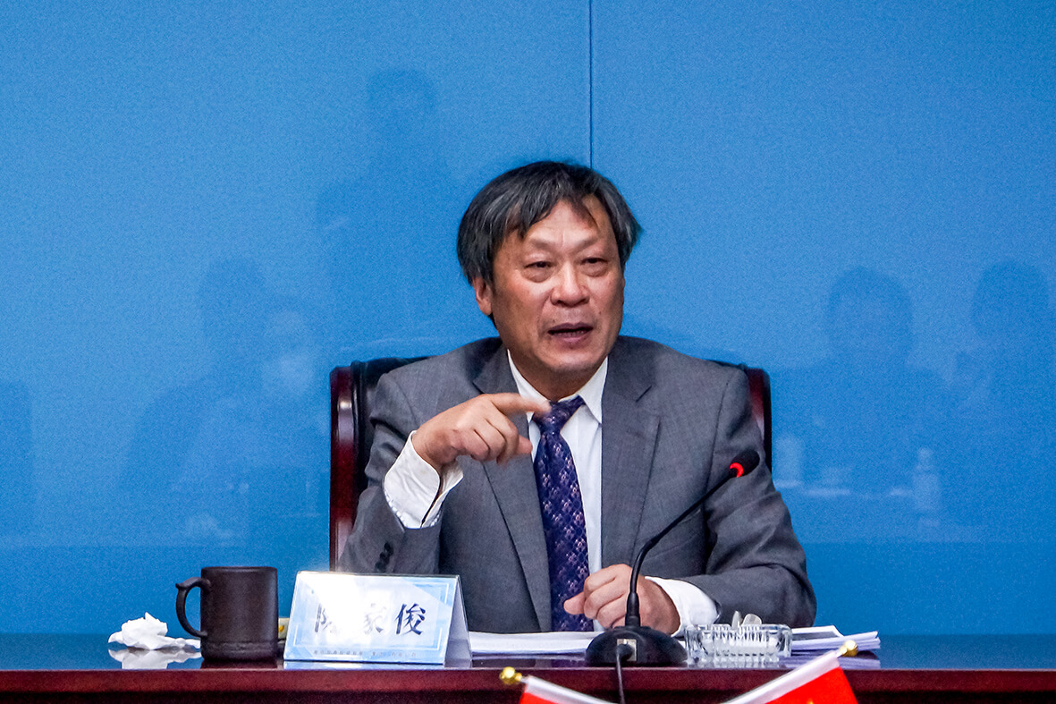 ↑蘇商集團(tuán)董事長(zhǎng)陳家俊先生在作2021年工作報(bào)告