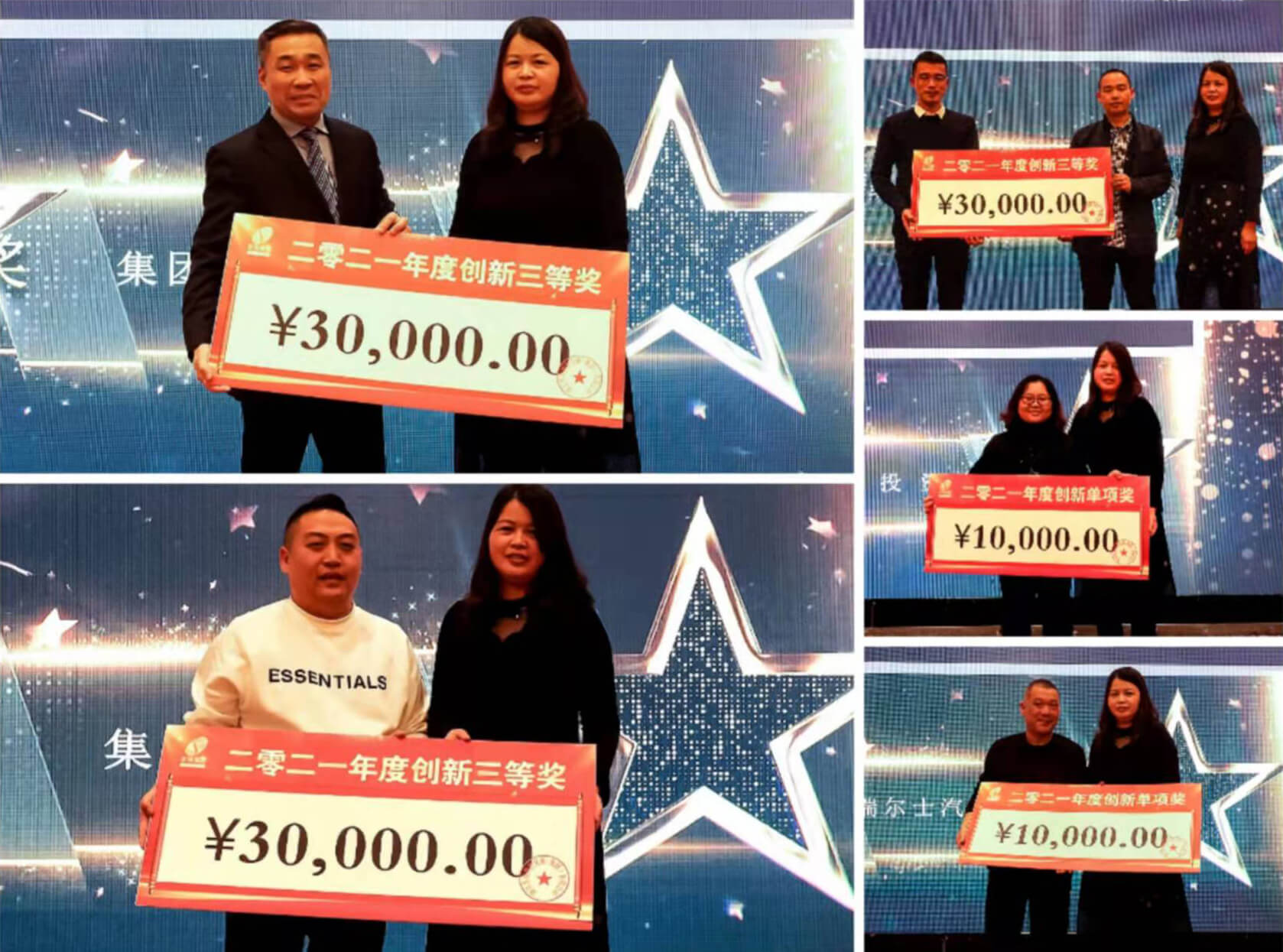 接著,集團(tuán)副總經(jīng)理陳寅先生和集團(tuán)總經(jīng)理助理?xiàng)钊A女士為獲得2021年度“創(chuàng)新二等獎(jiǎng)”、“創(chuàng)新三等獎(jiǎng)”以及“創(chuàng)新單項(xiàng)獎(jiǎng)”的集體頒發(fā)獎(jiǎng)金。